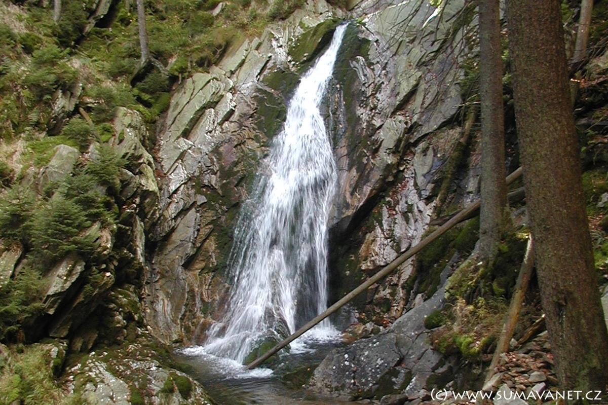 Romantická soutěska na Bílém potoce s jediným vodopádem na Šumavě. Jeho výška je 7 m. Nádherná přírodní scenérie. Nad vodopádem se nachází vyhlídková terasa.